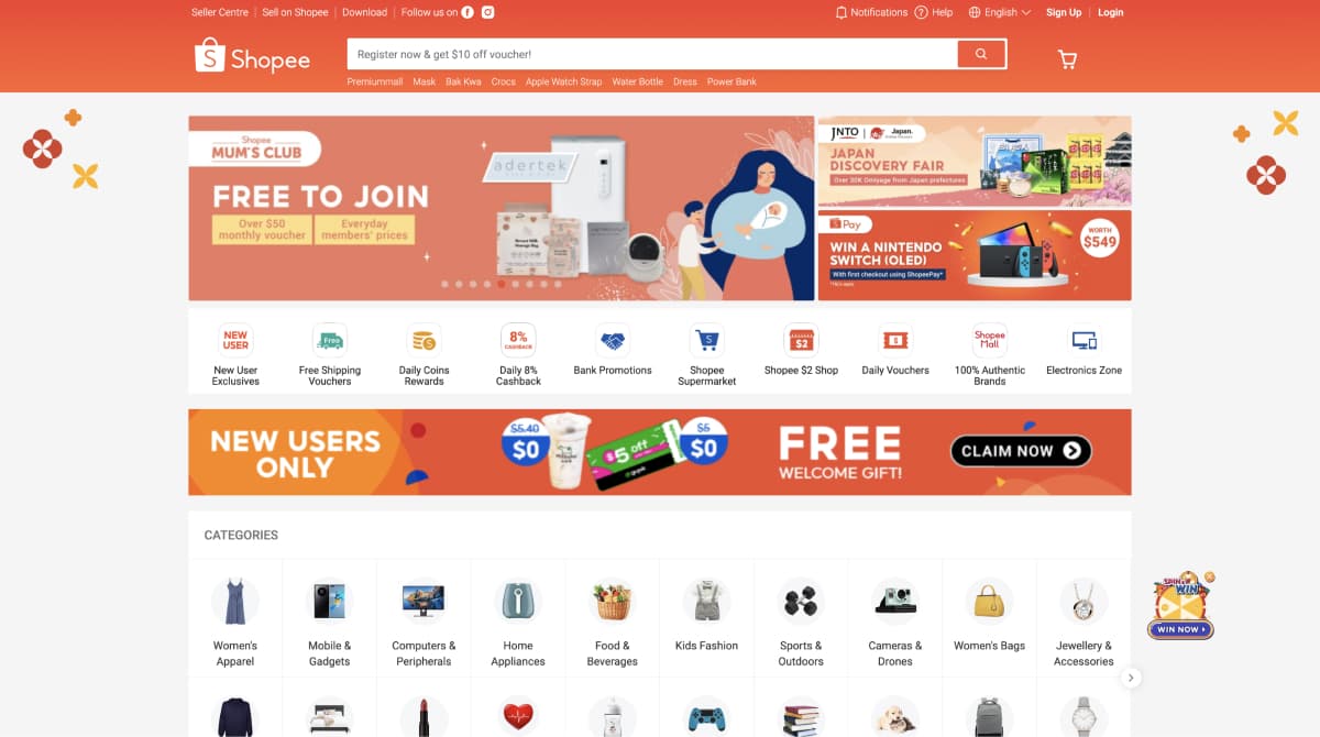 Dynamic banners and eventsShopee’s home page contains banners that feature current promotions and new products that change throughout the year. Having dynamic banners allows users to engage with content that remains relevant with seasonal events and trends.